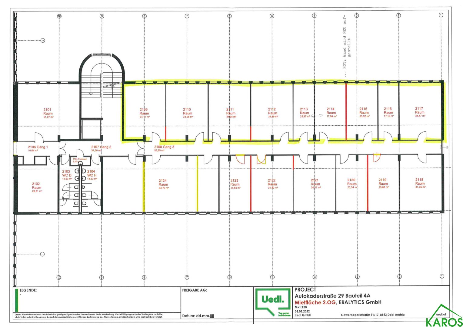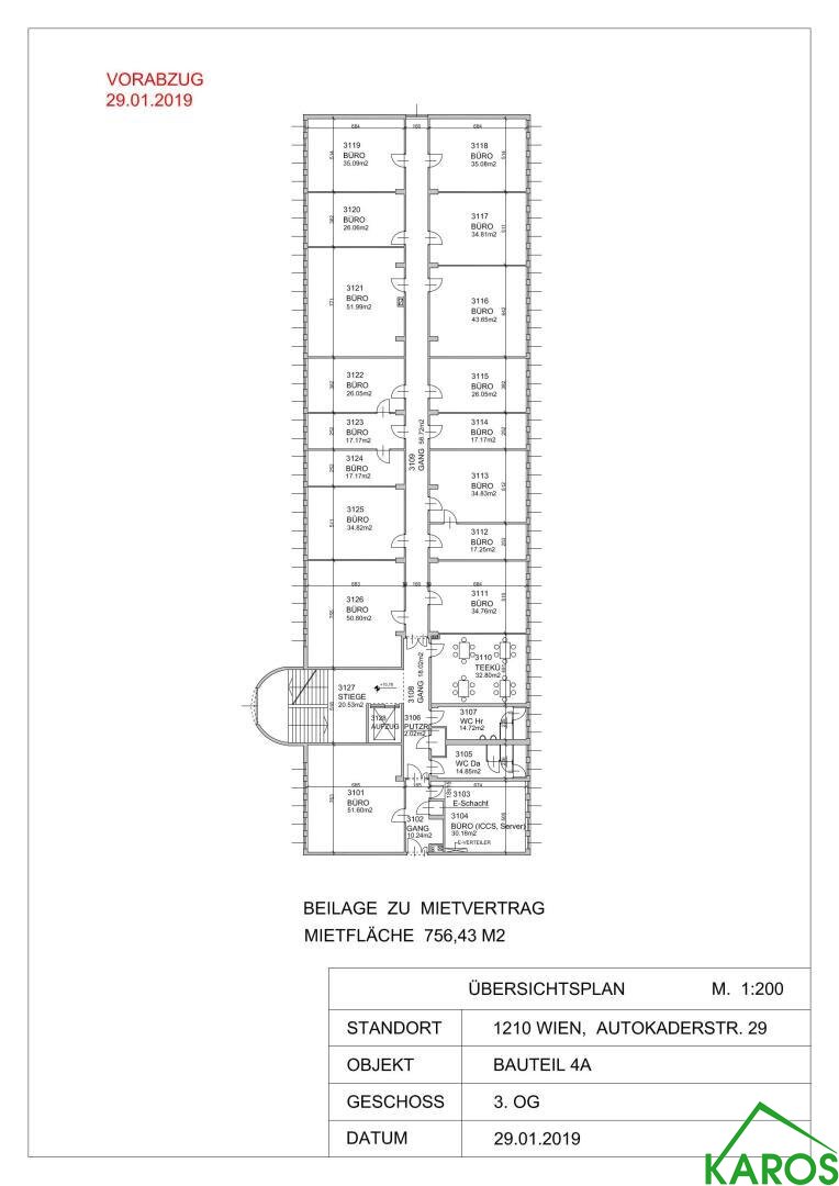 Zur Anmietung gelangt ein Teil des 2. OG (260,50 m²), sowie der Großteil des 3.Obergeschoßes im Ausmaß von 704,83 m² zu folg. Konditionen: